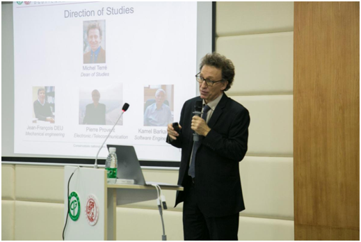 3月16日下午,法国国立工艺学院(CNAM)工程师学院院长代表团等一行人在中法联合学院报告厅与学院全体学生进行面对面交流,认真听取学院学生的心声,解答学生的疑问,勉励大家好好学习,此次论坛由教师发展中心主办。